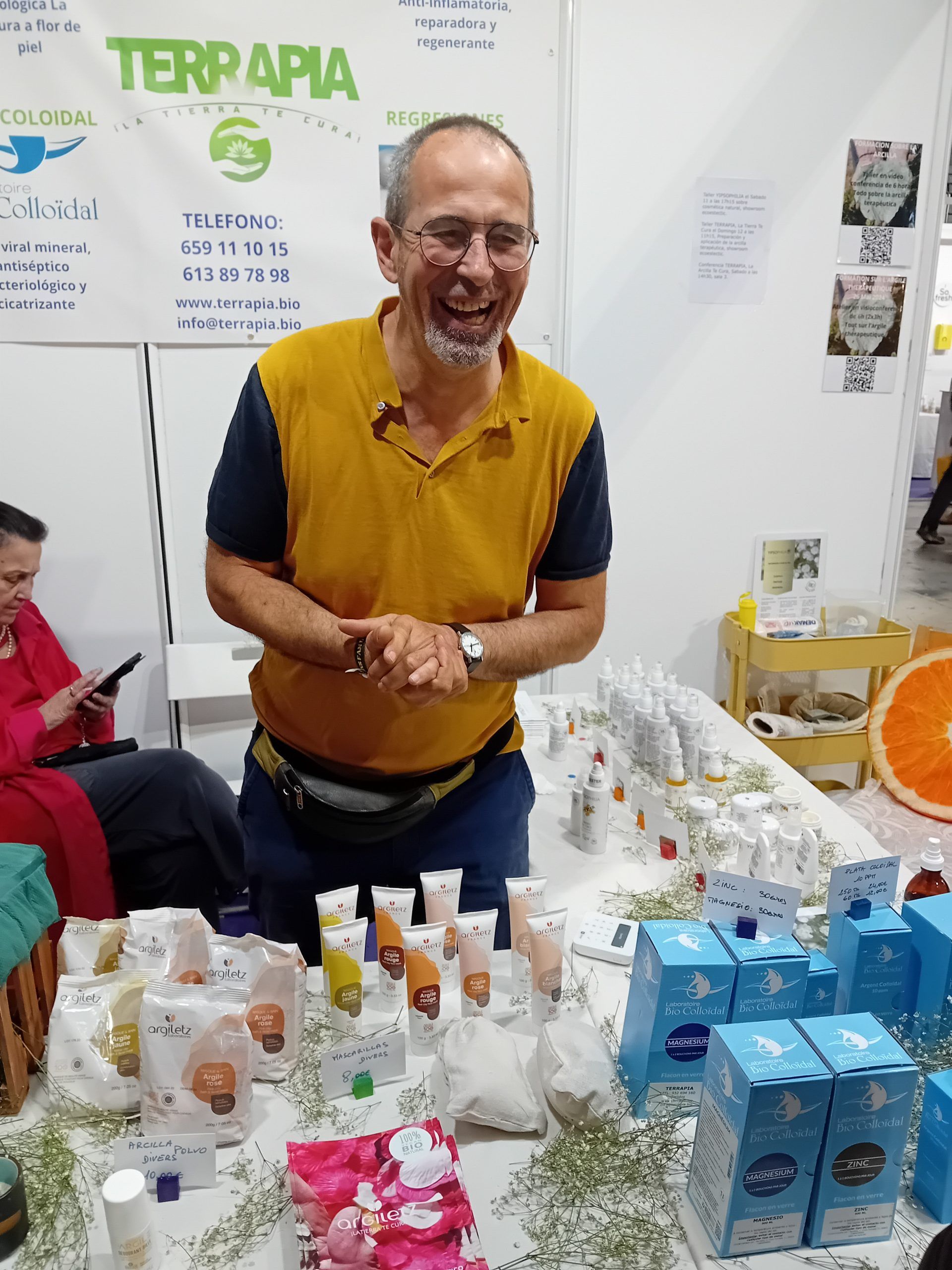 “Soy Sebastián y con mi mujer tenemos Terrapia La tierra te cura, que es una distribuidora de productos naturales para el cuidado de la salud. Tenemos la marca de arcilla más antigua de Francia. Tenemos plata coloidal de uso interno y externo para cualquier afección viral. También obtenemos una línea de cosmética, la más natural que se llama Gypsophila, que tiene 45 años y que es comestible.