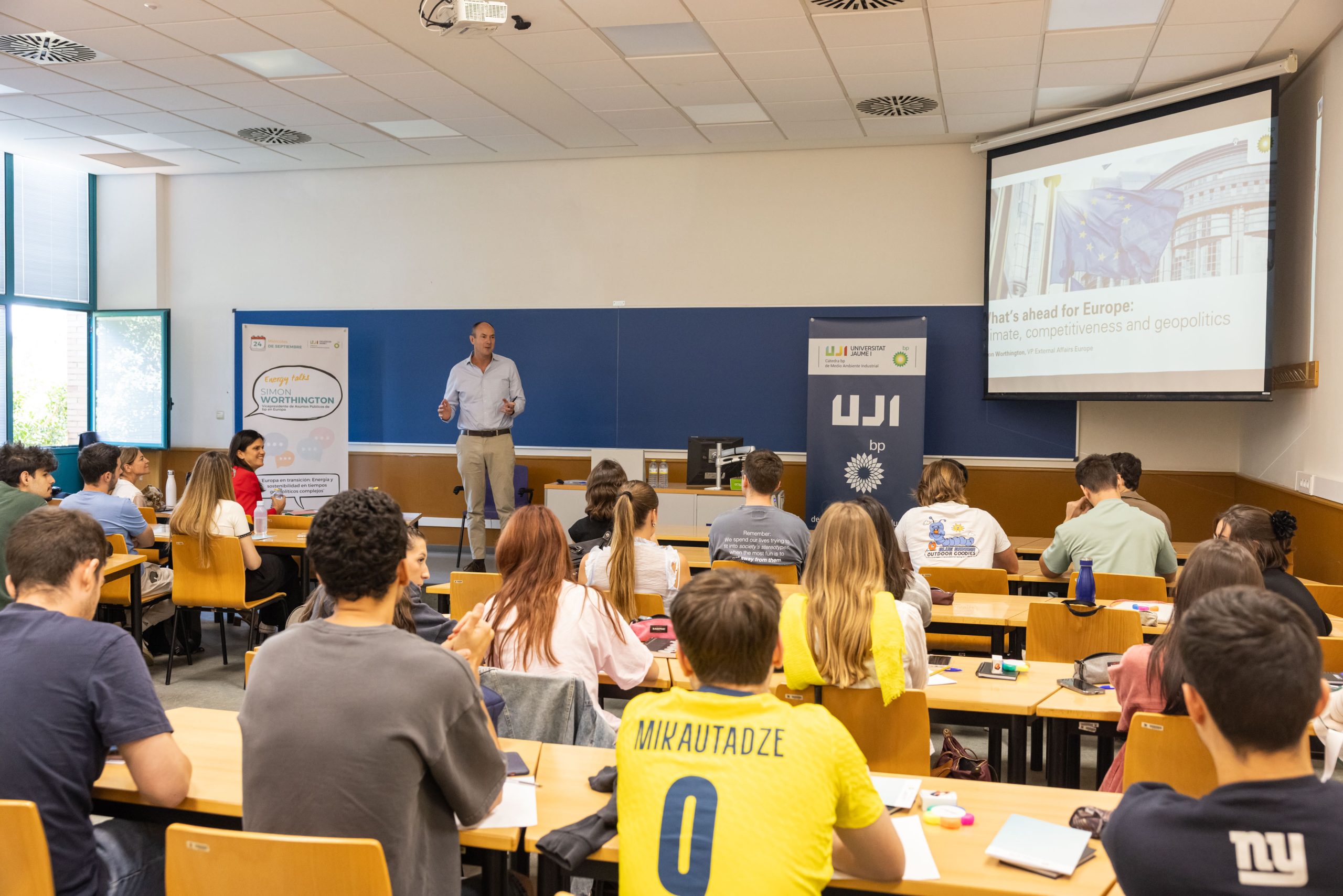 La Universitat Jaume I organizó hoy, a través de la Cátedra bp de Medio Ambiente Industrial, la charla “Europa en transición: Energía y sostenibilidad en tiempos geopolíticos complejos” en la Escuela Superior de Tecnología y Ciencias Experimentales